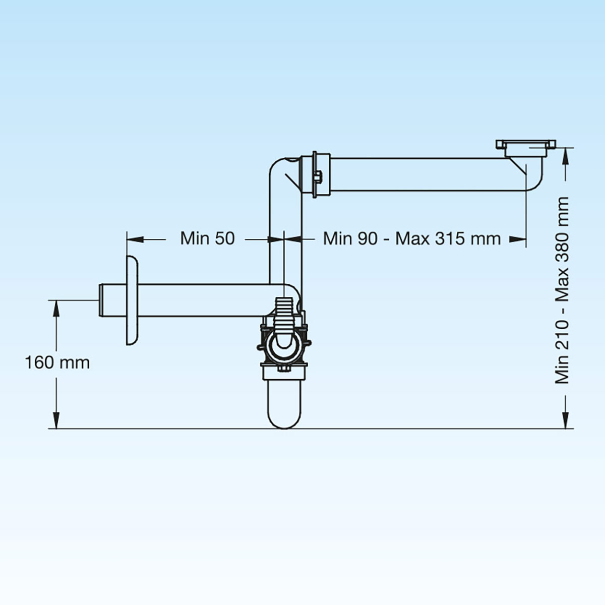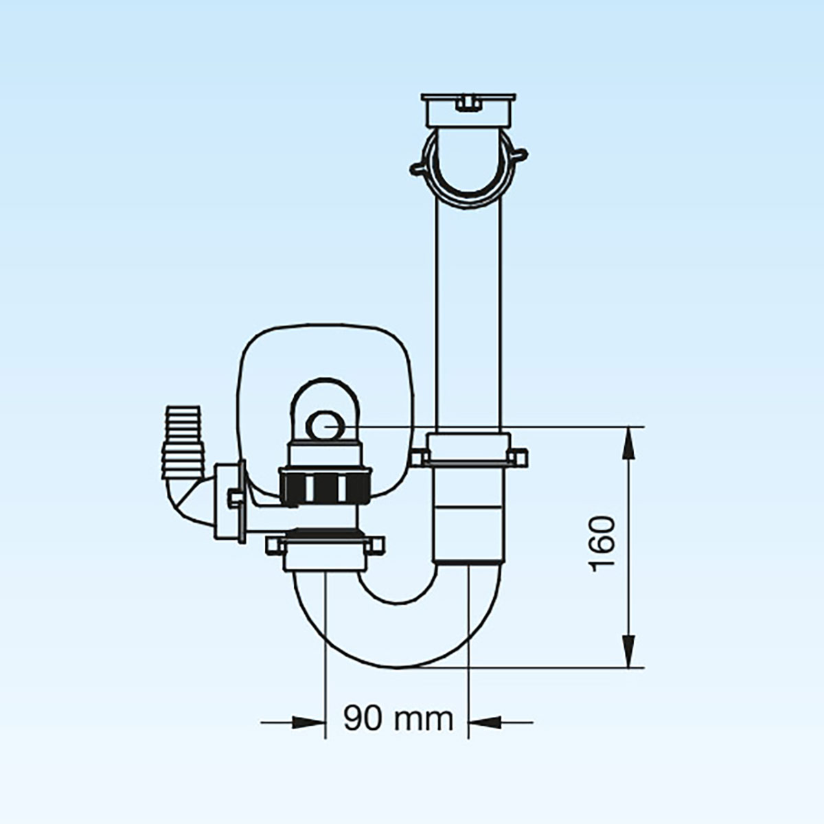 Platzsparsiphon für Spülen mit einem Becken mit Kontrollöffnung Ø20-25