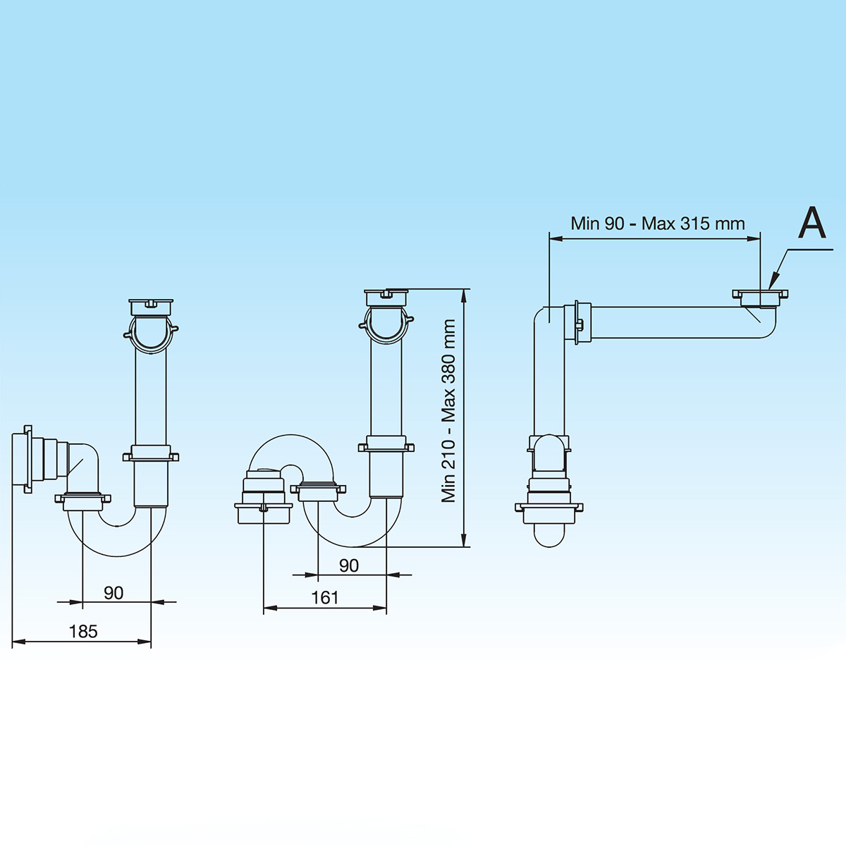 Platzsparsiphon für Waschtische