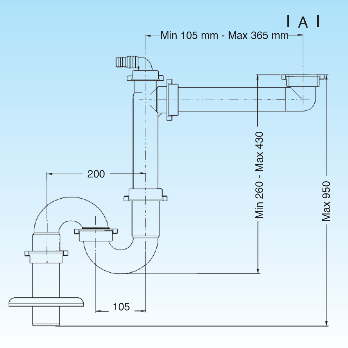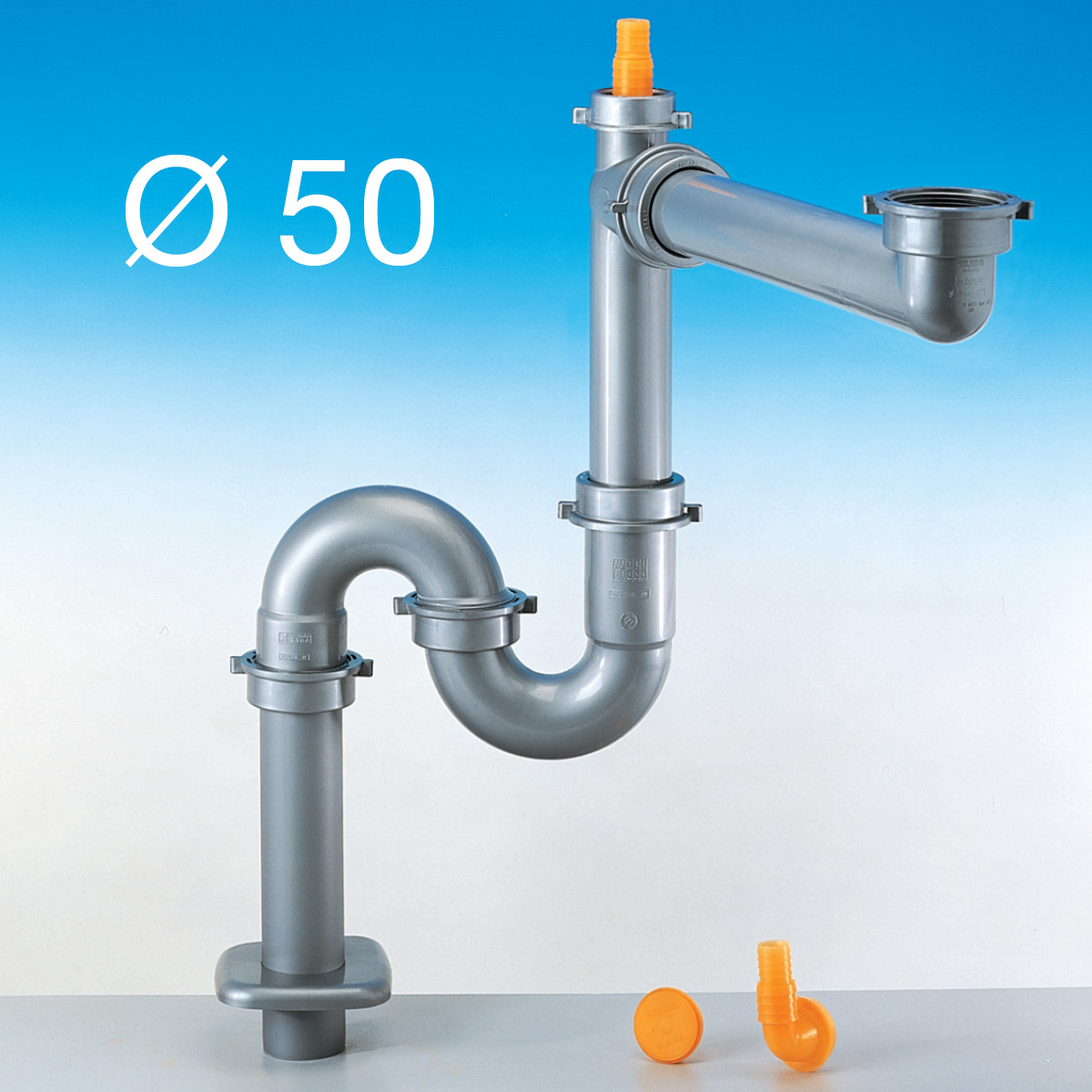Raumsparsiphon für Gewerbespülen mit einem Becken.