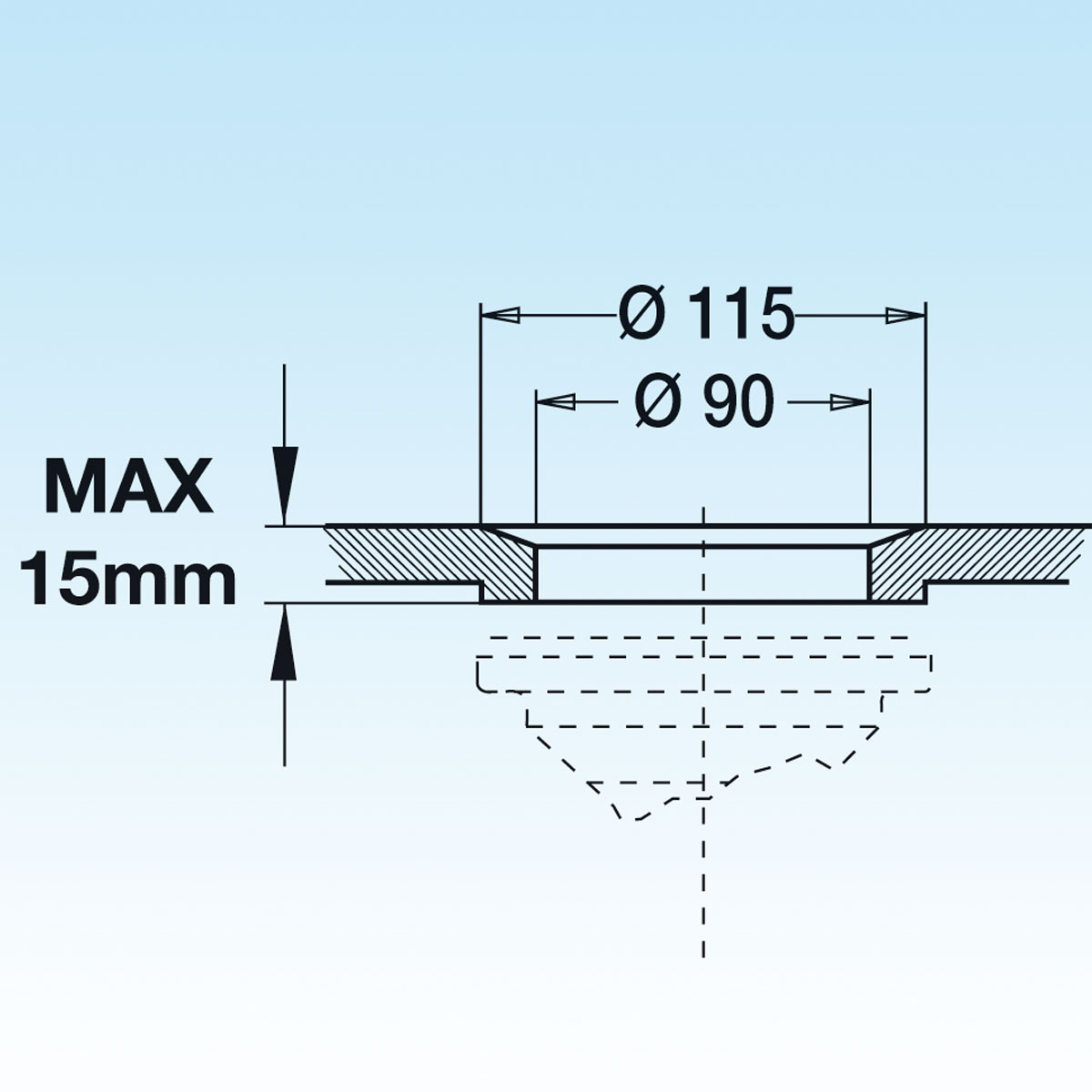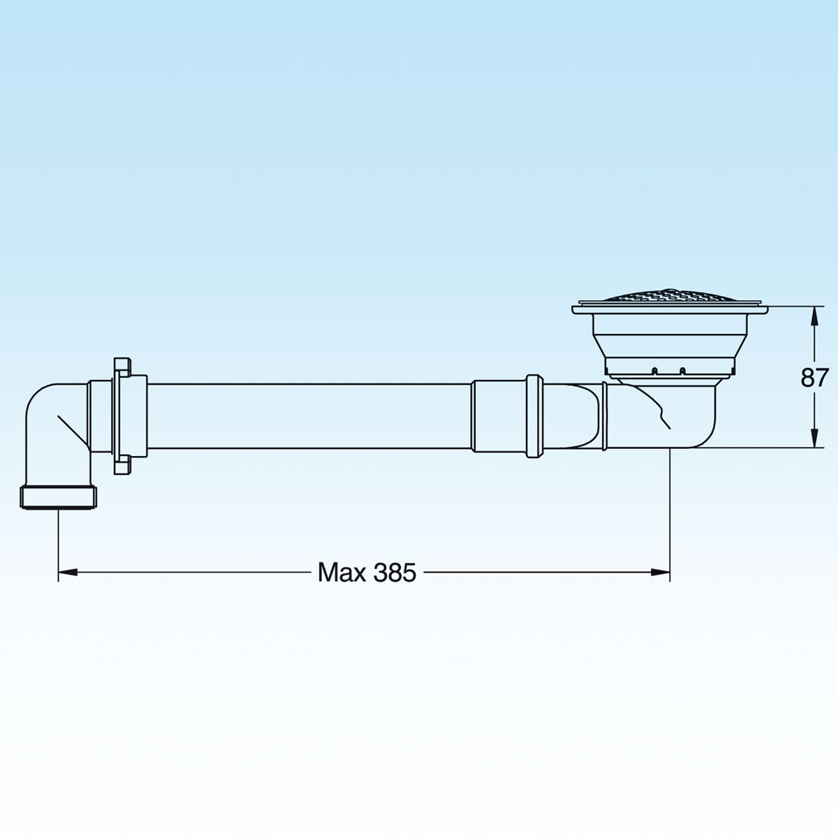 Space saver drain fitting with grill Ø 115.