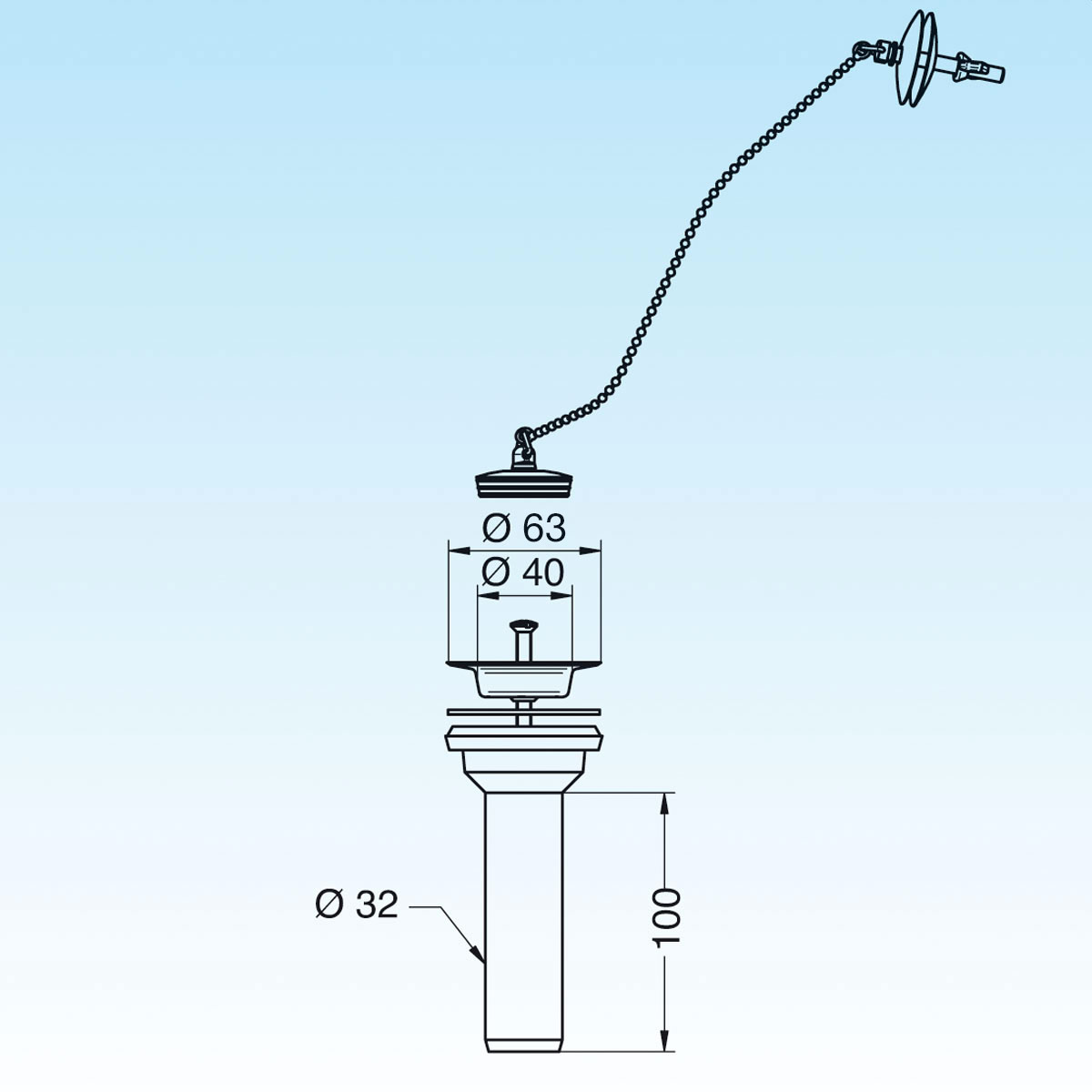 Drain fitting Ø 32 for washbasin with plug with chain.