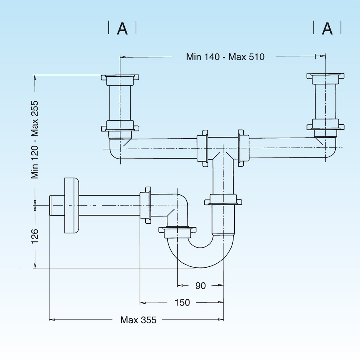 “P” trap for double bowl sinks, without drain fitting, with fittings