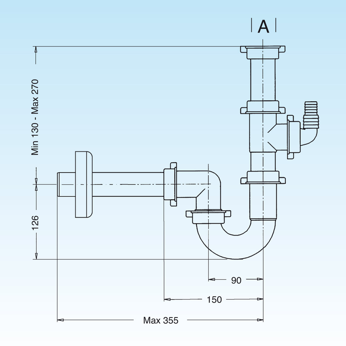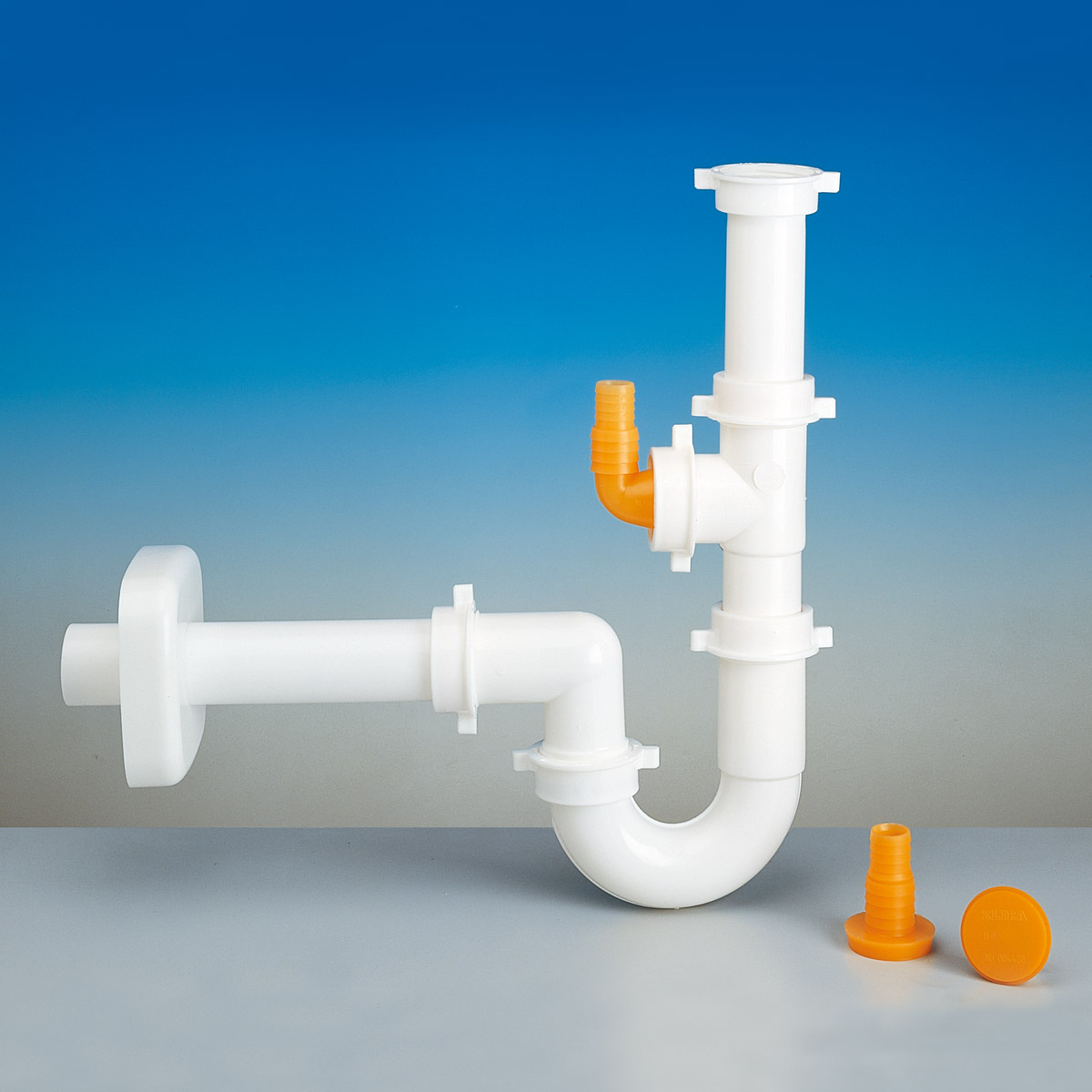 Siphon “TUBE” pour éviers avec un bassin, sans bonde, avec raccord.