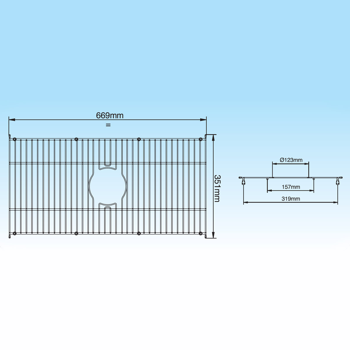 Grille 669x351 mm - Trou central MOD. 1