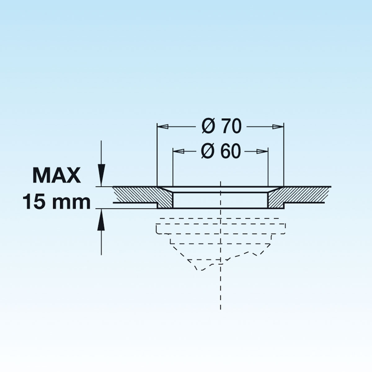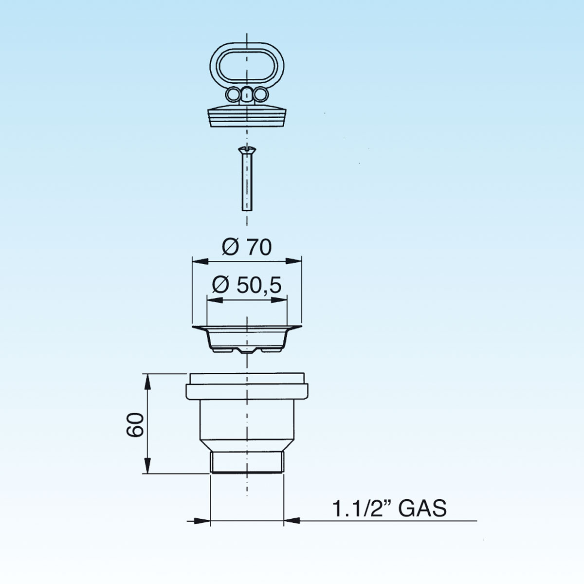 Bonde sans trop plein pour éviers en acier. Ø 60 hole.