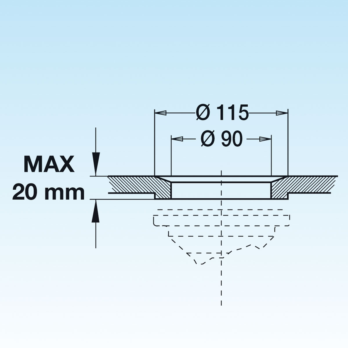Bonde avec trou Ø 90 sans trop plein pour éviers industriels.
