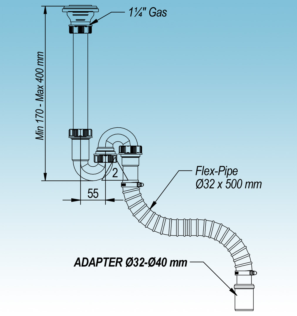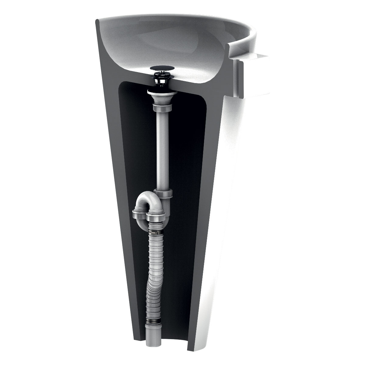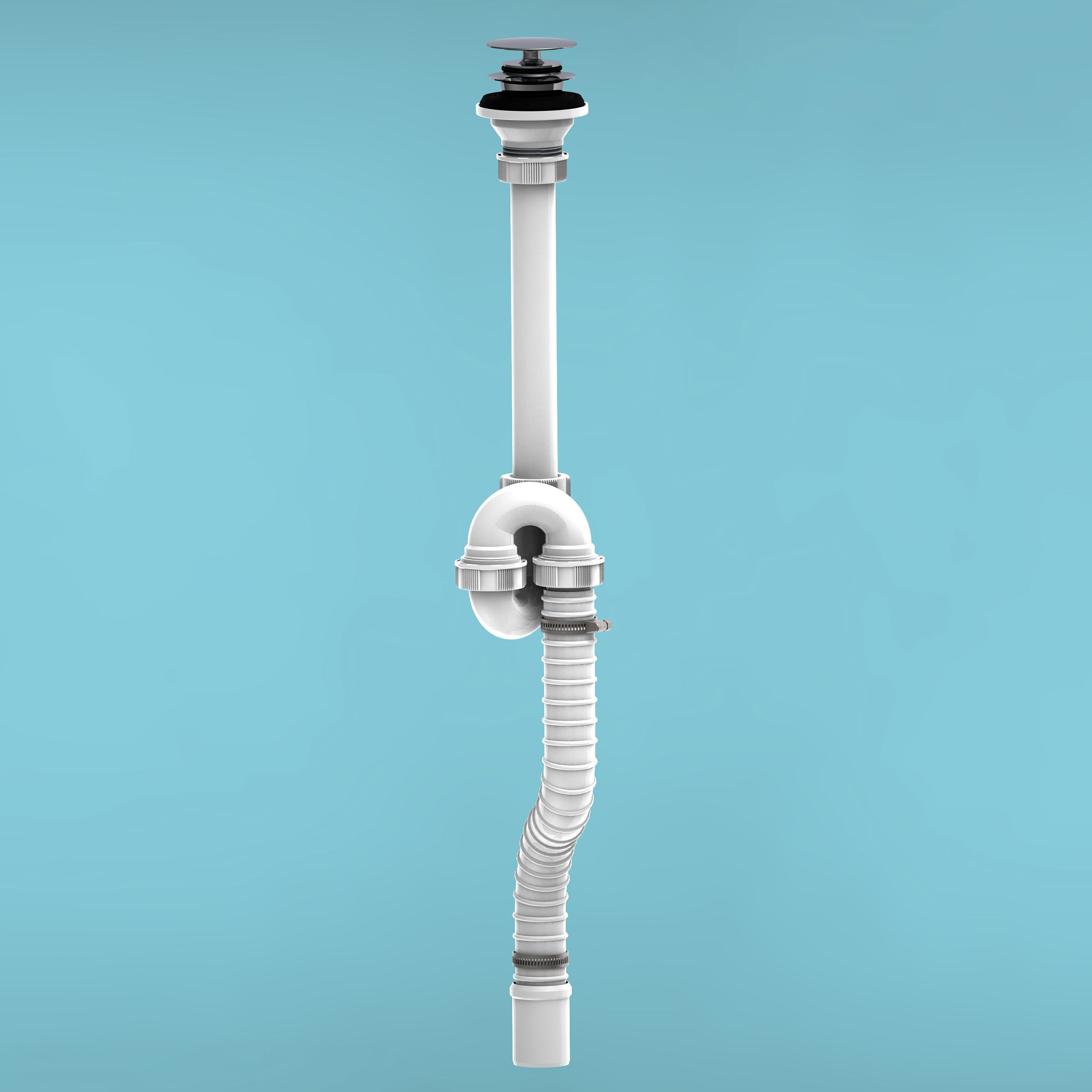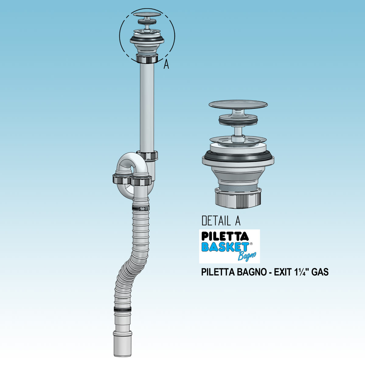Siphons flexible avec sortie au sol pour lavabos autoportants avec Basket Bagno